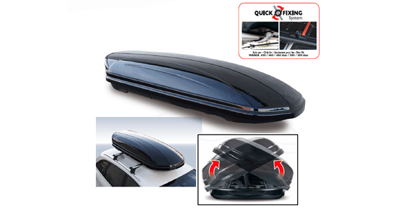 Автобокс сочетает в себе надежность крепления – превосходное качество материалов обеспечивает надежность транспортировки. Оптимальные условия фиксации – быстро и без труда устанавливается к багажнику стальной Т-винтовой конструкцией на поперечины багажника. И относительно небольшую легкость конструкции – при полезном объеме в 580 литров, автобокс весит всего 20 кг и позволит без труда вместить все необходимое в пределах 75 кг.