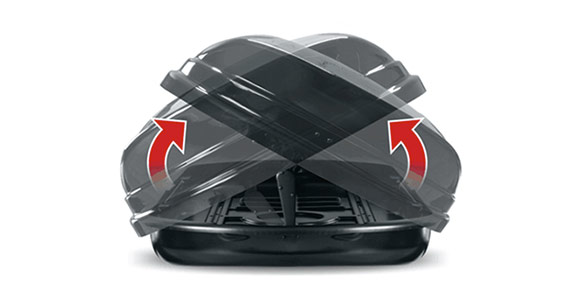 Быстро и без труда устанавливается к багажнику стальной Т-винтовой конструкцией на поперечины багажника. Преимущество также и в том, что он открывается с двух сторон. Его крышка легко захлопывается и надежно закрывается двумя точками запирания. Ключи в комплекте. Содержимое внутри надежно и бережно закрепляется ремнями, они предусмотрены в комплекте.